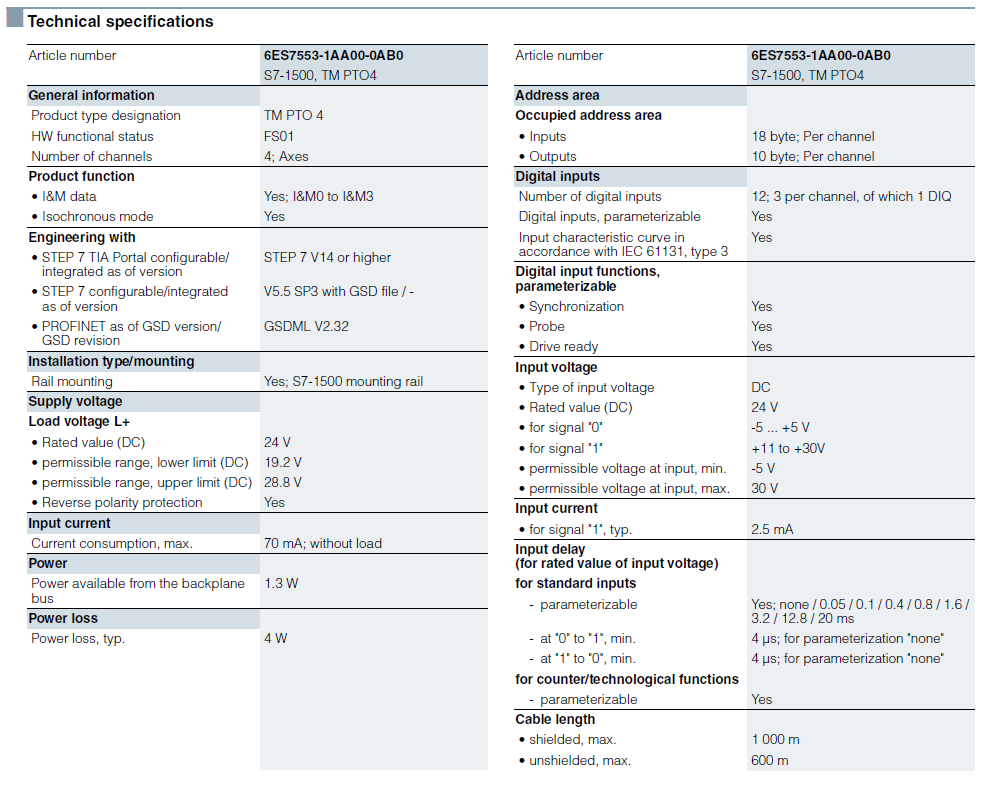 S7-1500, Interface 모듈 for PTO (펄스 트레인 출력) TM PTO 4
