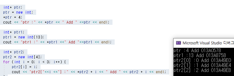 cout << "ptr2["<<i <<"] :" << *ptr2 + i << " Add " << ptr2 + i << endl;