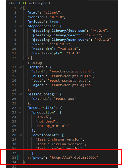 서버의 포트 번호와 IP 어드레스를 사용하시는것에 맞게 변경 하시면 됩니다. 저는 5000번 포트와 로컬호스트를 사용하여 위와 같이 세팅 하였습니다. 이렇게 하면 리액트 클라이언트에서 서버 사이드로 접속이 가능합니다.