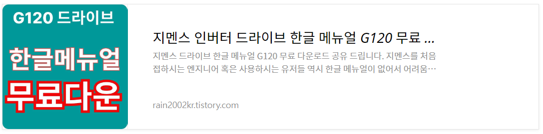 | 지멘스 인버터 드라이브 한글 메뉴얼 G120 무료 다운로드 공유 (0) | 2024.03.21 |