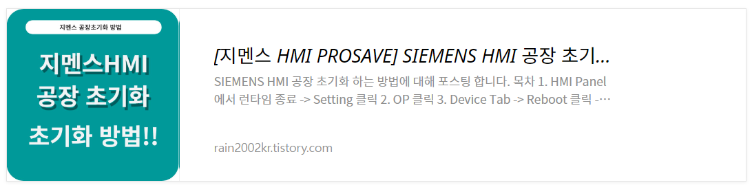 | [지멘스 HMI PROSAVE] SIEMENS HMI 공장 초기화 하는 방법 (0) | 2024.02.12 |